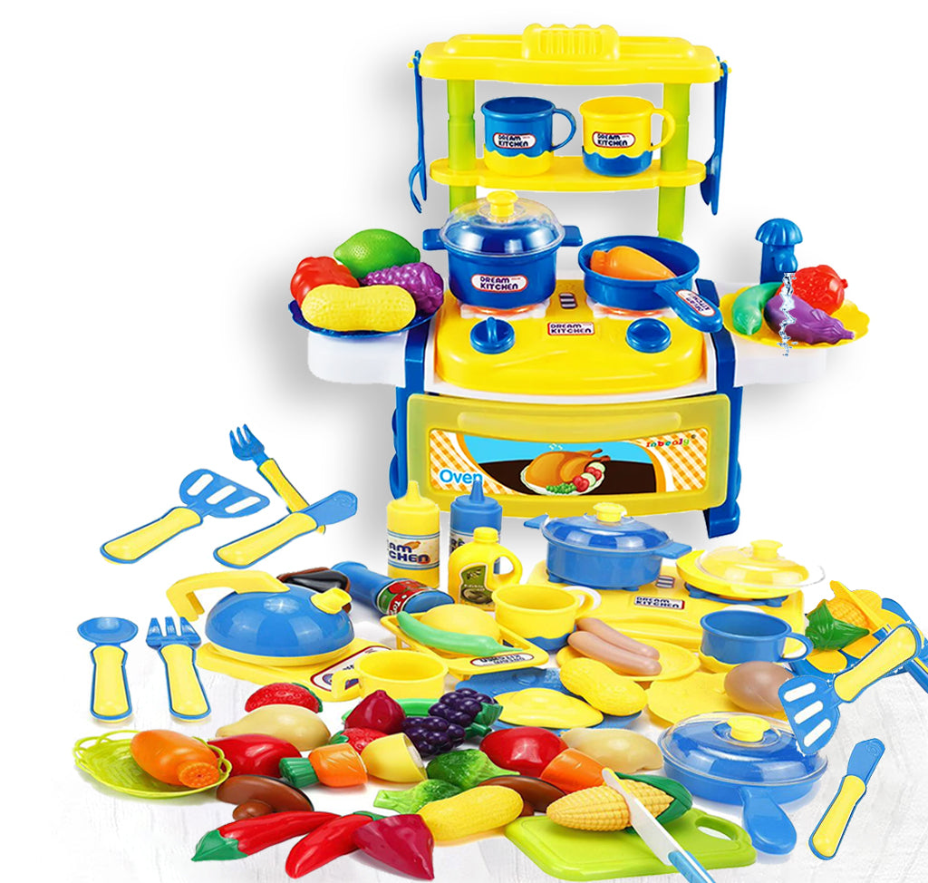 Coo11 Kids 43pcs Yellow Kitchen Pretend Play Food Toys Set with 39pcs 3 in 1 Yellow Kitchen Pretend Play Food Toys Educational Set for Boys and Girls Gift Gift Ages 3+ Years Old