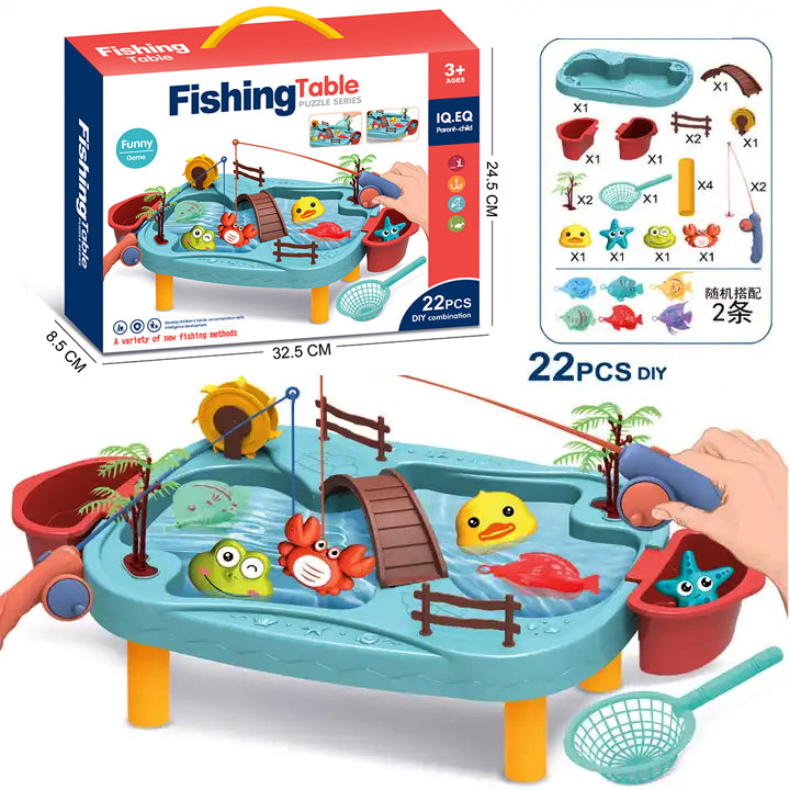 COO11 Kids 22 Pcs Fishing Table with 2x Fishing Toy Bath Toys for Children Swimming Toys Plash Water Table Pool Toy for Toddlers Fishing Pole Rod Net, Fishing Game Kids Age 3 4 5 6