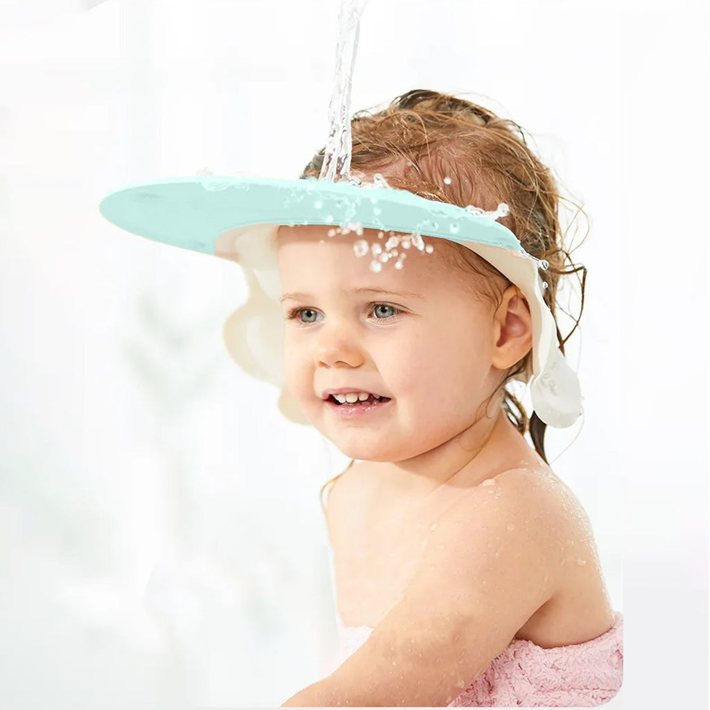 Coo11 Kids Bathing Water Set, Sprinkler Spoon, Waterfall Water Station and Comfortable Baby Bathing Shower Cap, Protect Eye & Ear, Adjustable Hair Washing Hat for Kids Green