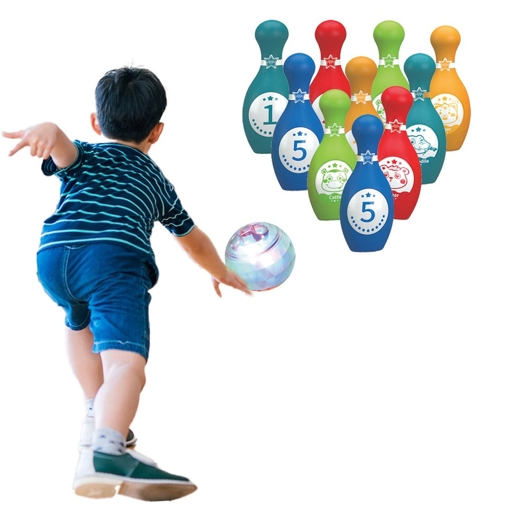 Coo11 Kids Bowling Set - with 10 Pins & 2 Round Ball Educational Early Development Indoor Outdoor Games for Toddlers, Children & Adults Gits for Boys Girls Ages 3,4,5 -12 Years Old