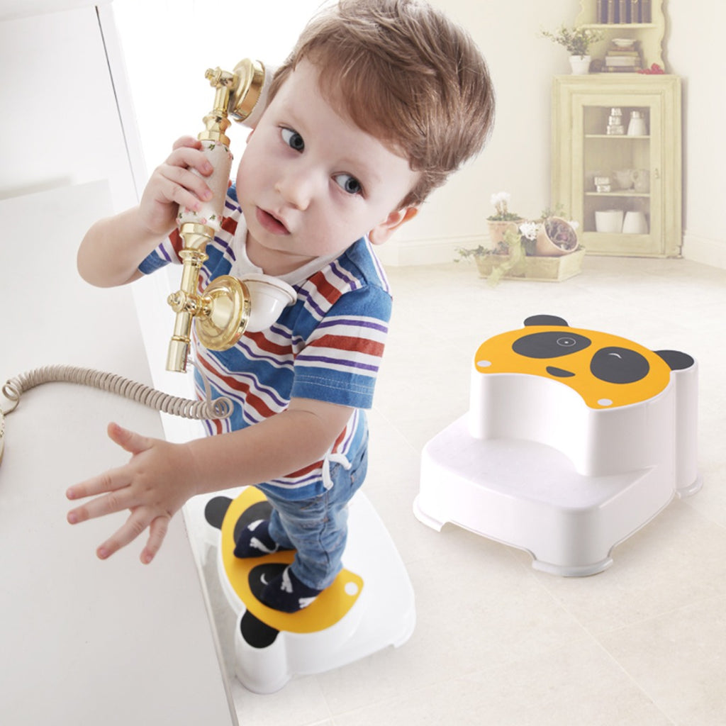 Coo11 Kids Panda Double Step Stool Perfect for Boys and Girls Toddler Toilet Training Anti-Slip Stepping Stool Use in the Kitchen and Bathroom Easy to Clean Portable Lightweight